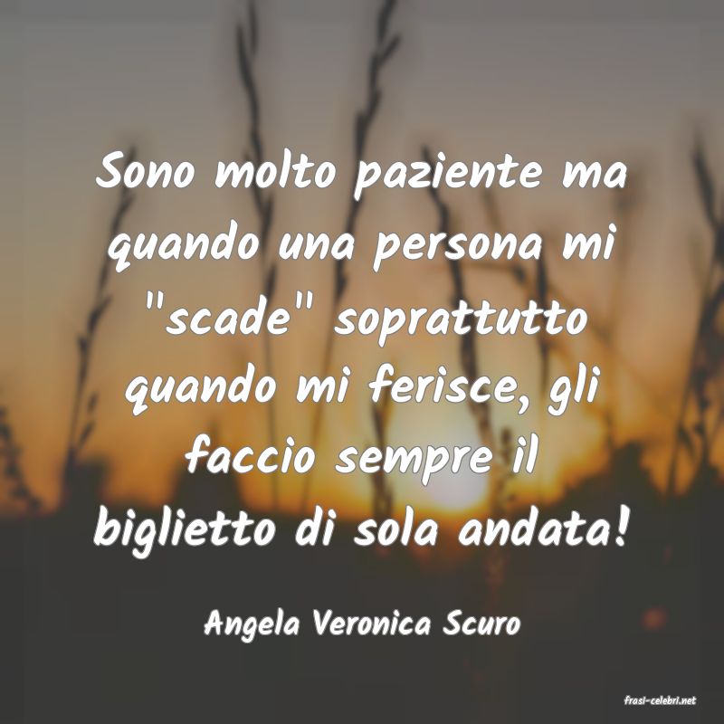 Sono molto paziente ma quando una persona mi "scade" soprattutto quando mi ferisce, gli faccio sempre il biglietto di sola andata!