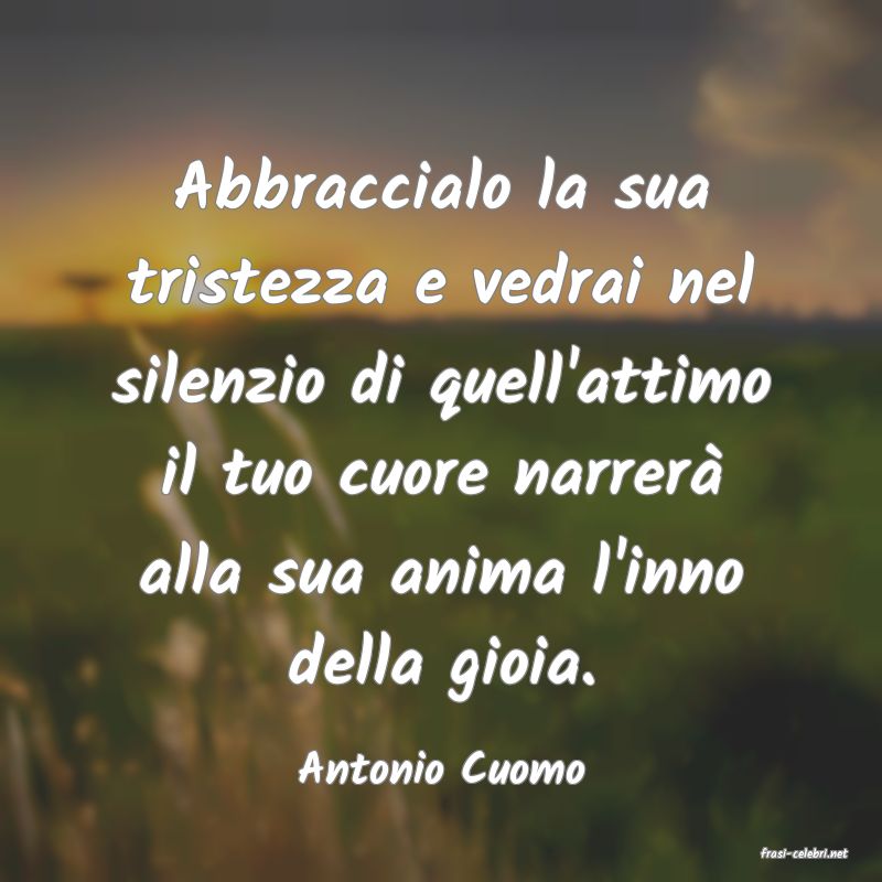 Abbraccialo la sua tristezza e vedrai nel silenzio di quell'attimo il tuo cuore narrerà alla sua anima l'inno della gioia.