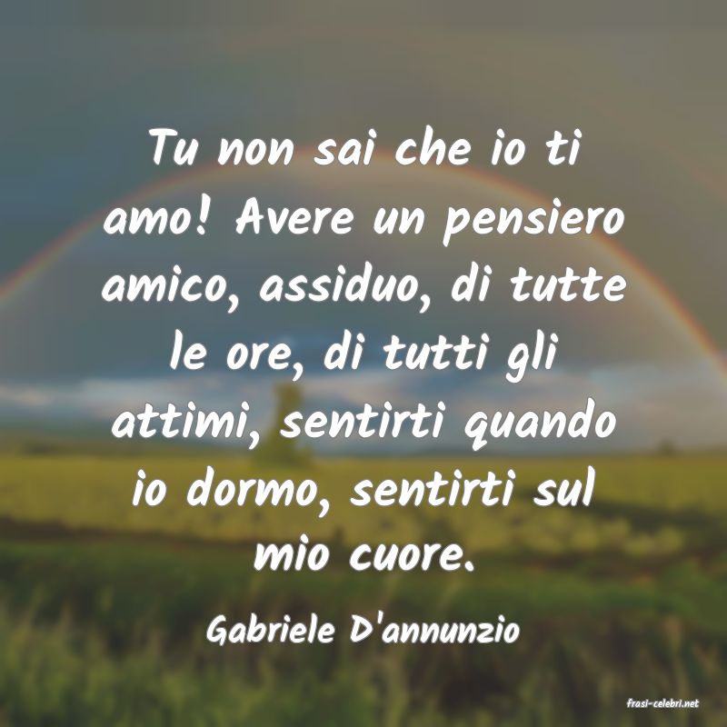 Tu non sai che io ti amo! Avere un pensiero amico, assiduo, di tutte le ore, di tutti gli attimi, sentirti quando io dormo, sentirti sul mio cuore. Gabriele D'annunzio