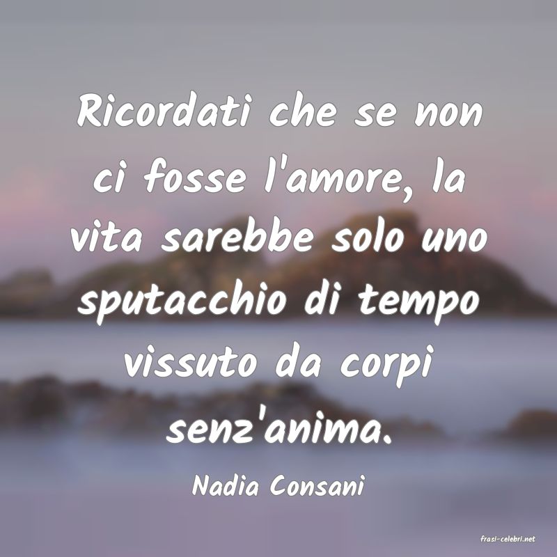 Ricordati che se non ci fosse l'amore, la vita sarebbe solo uno sputacchio di tempo vissuto da corpi senz'anima.