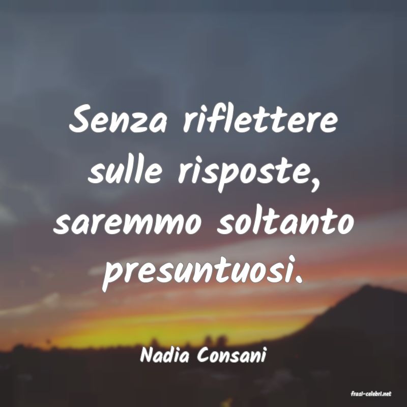 Senza riflettere sulle risposte, saremmo soltanto presuntuosi.