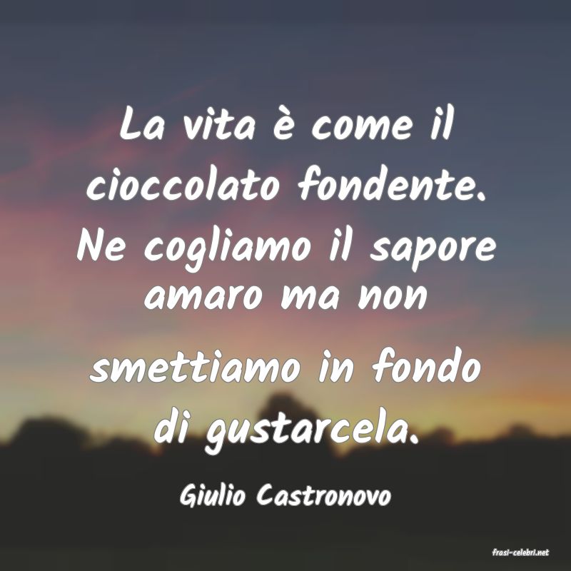 La vita è come il cioccolato fondente. Ne cogliamo il sapore amaro ma non smettiamo in fondo di gustarcela.