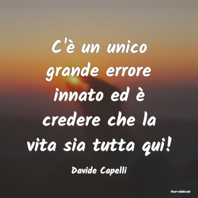 C'è un unico grande errore innato ed è credere che la vita sia tutta qui!
