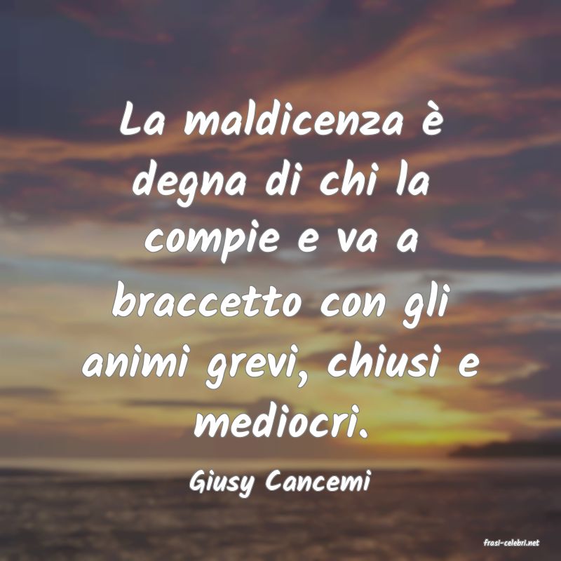 La maldicenza è degna di chi la compie e va a braccetto con gli animi grevi, chiusi e mediocri.