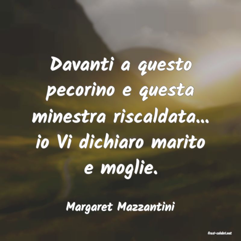 Davanti a questo pecorino e questa minestra riscaldata... io Vi dichiaro marito e moglie.