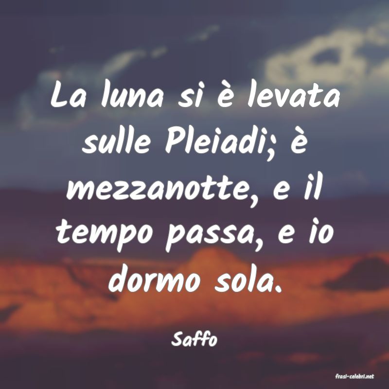La luna si è levata sulle Pleiadi; è mezzanotte, e il tempo passa, e io dormo sola.