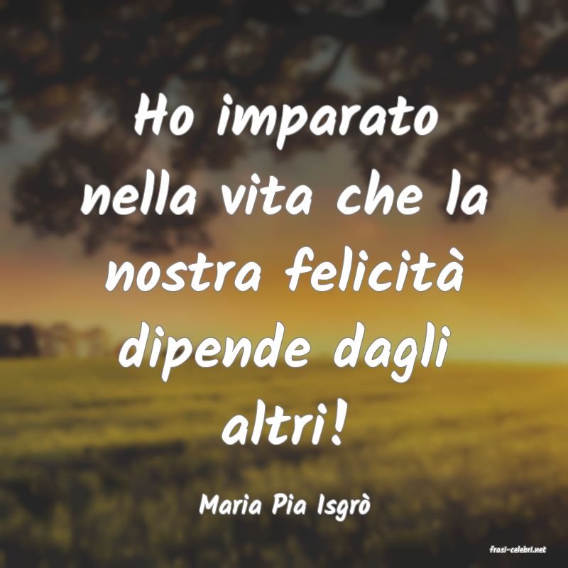Ho imparato nella vita che la nostra felicità dipende dagli altri!