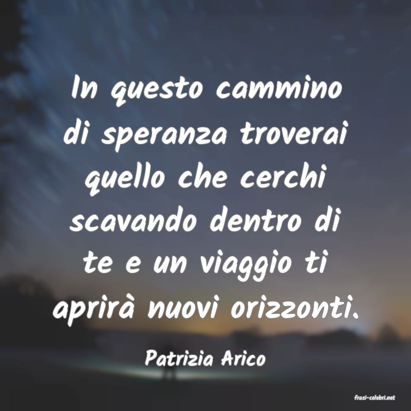 In questo cammino di speranza troverai quello che cerchi scavando dentro di te e un viaggio ti aprirà nuovi orizzonti.