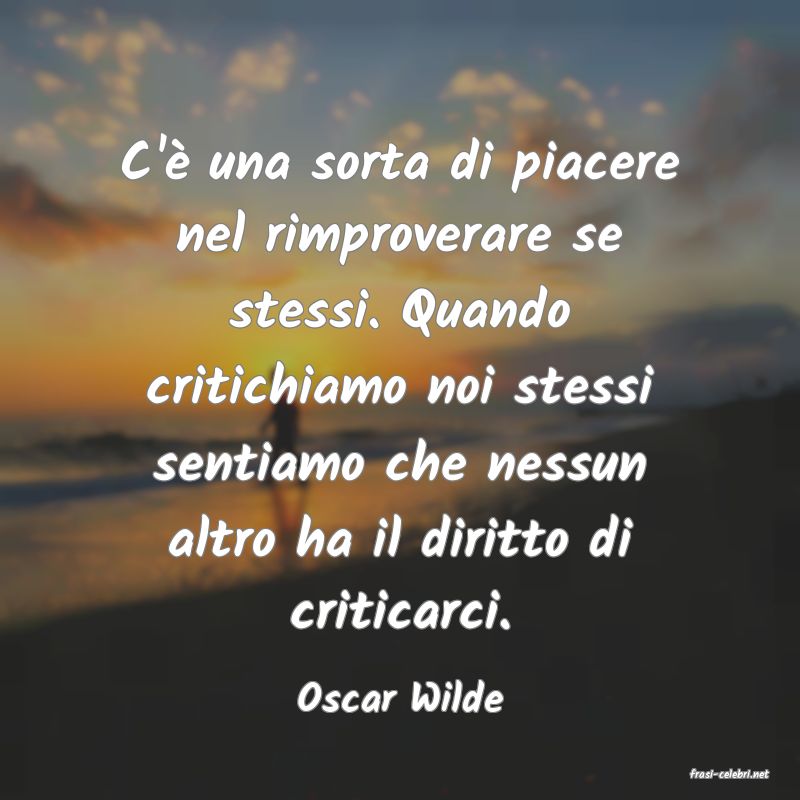 C'è una sorta di piacere nel rimproverare se stessi. Quando critichiamo noi stessi sentiamo che nessun altro ha il diritto di criticarci.