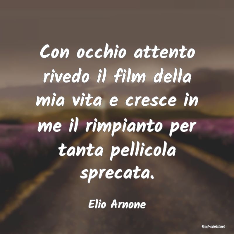 Con occhio attento rivedo il film della mia vita e cresce in me il rimpianto per tanta pellicola sprecata.