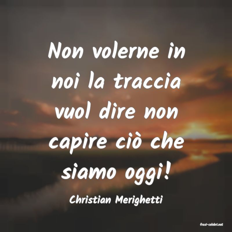 Non volerne in noi la traccia vuol dire non capire ciò che siamo oggi!