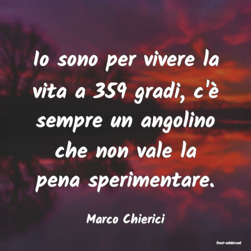 Io sono per vivere la vita a 359 gradi, c'è sempre un angolino che non vale la pena sperimentare.