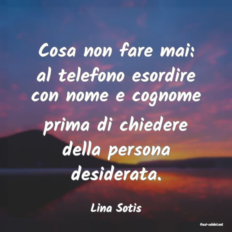 Lina Sotis: Cosa non fare mai: al telefono esordire con nome e