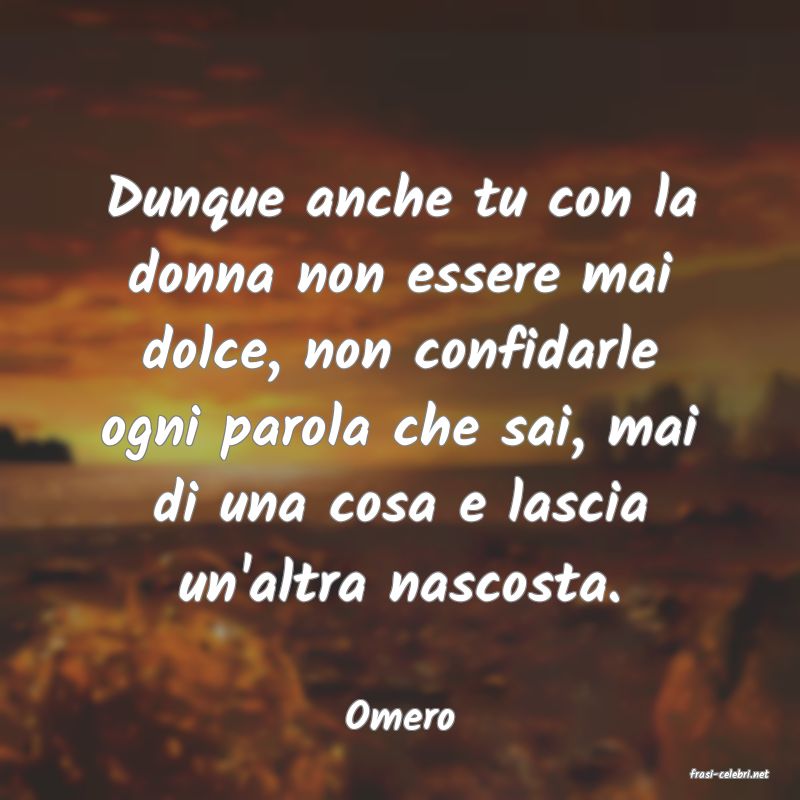 Dunque anche tu con la donna non essere mai dolce, non confidarle ogni parola che sai, mai di una cosa e lascia un'altra nascosta.