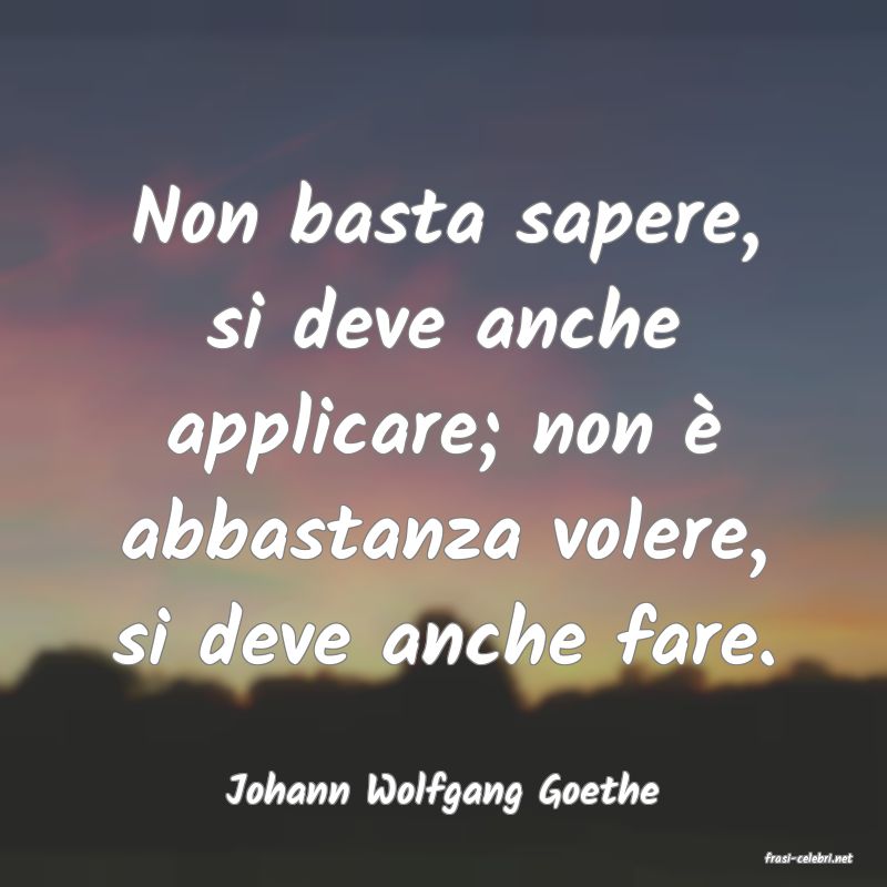 Non basta sapere, si deve anche applicare; non � abbastanza volere, si deve anche fare.