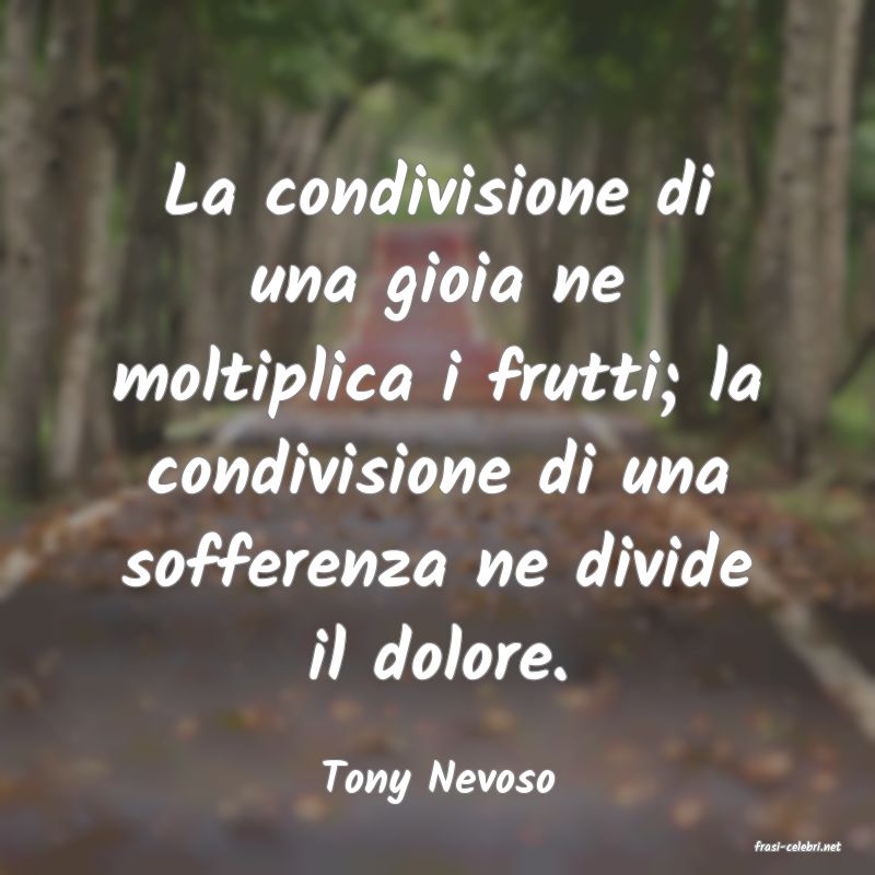 La condivisione di una gioia ne moltiplica i frutti; la condivisione di una sofferenza ne divide il dolore.