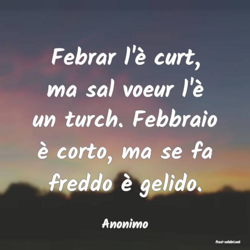 Febrar l'� curt, ma sal voeur l'� un turch.