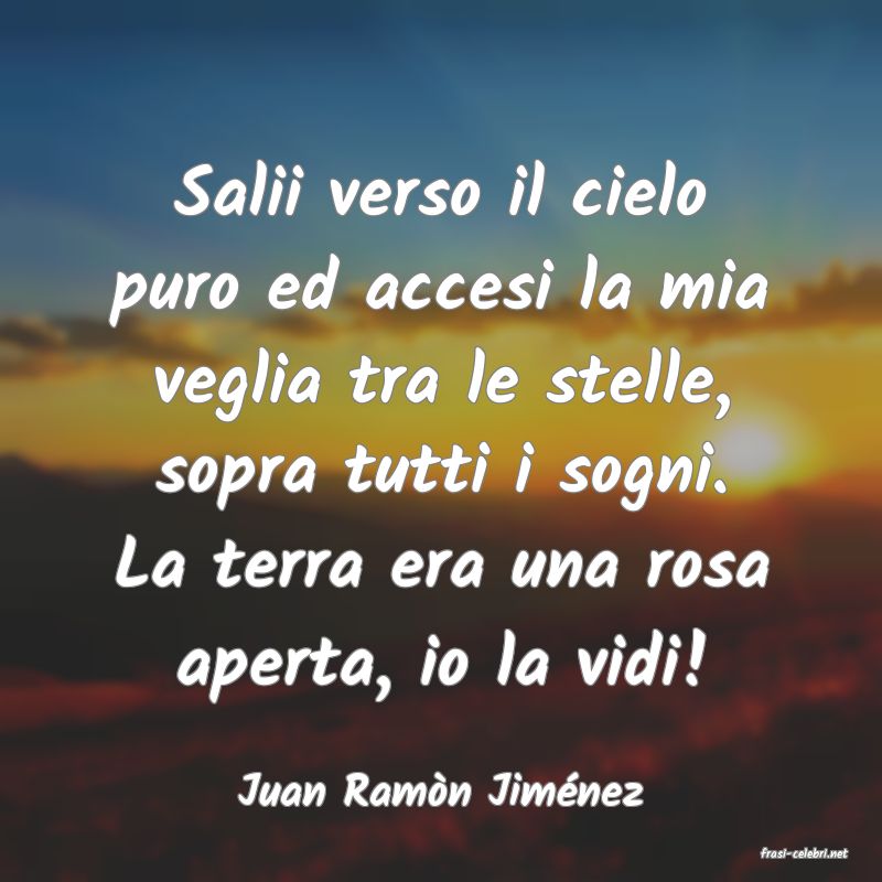 Salii verso il cielo puro ed accesi la mia veglia tra le stelle, sopra tutti i sogni. La terra era una rosa aperta, io la vidi! Juan Ram?n Jim?nez