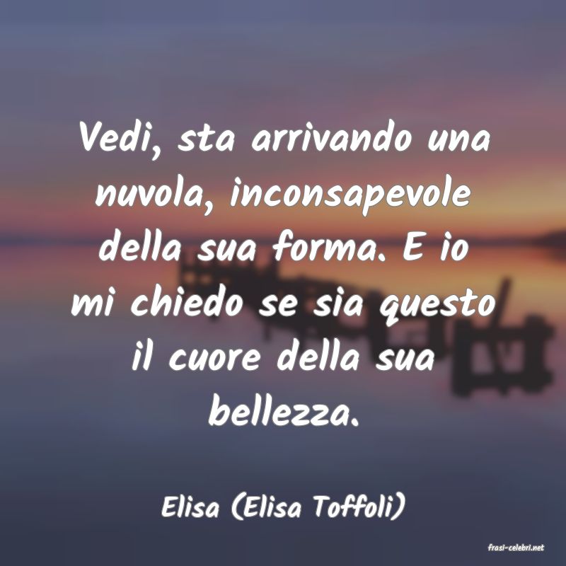 Vedi, sta arrivando una nuvola, inconsapevole della sua forma. E io mi chiedo se sia questo il cuore della sua bellezza.
