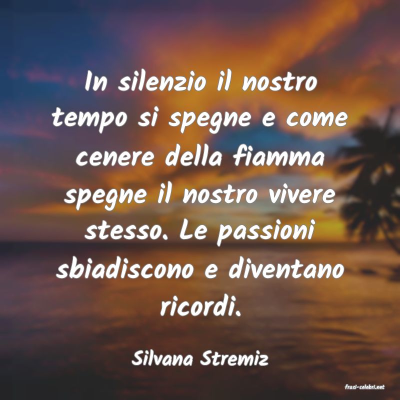 In silenzio il nostro tempo si spegne e come cenere della fiamma spegne il nostro vivere stesso. Le passioni sbiadiscono e diventano ricordi.