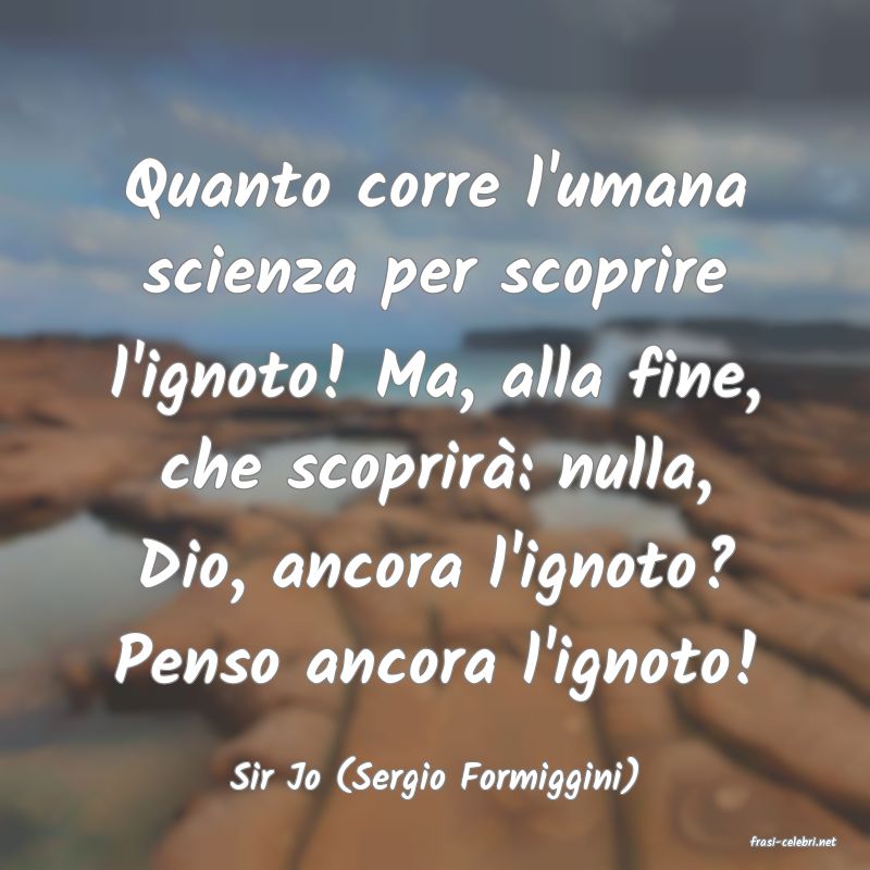 Quanto corre l'umana scienza per scoprire l'ignoto! Ma, alla fine, che scoprir�: nulla, Dio, ancora l'ignoto? Penso ancora l'ignoto!