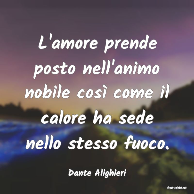 L'amore prende posto nell'animo nobile cos� come il calore ha sede nello stesso fuoco.