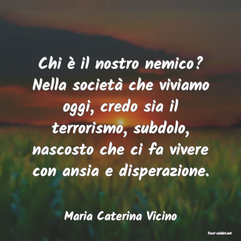 Chi � il nostro nemico? Nella societ� che viviamo oggi, credo sia il terrorismo, subdolo, nascosto che ci fa vivere con ansia e disperazione.