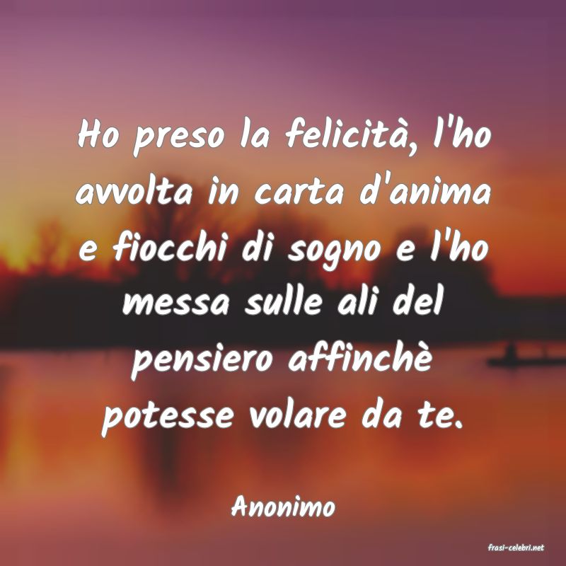 Ho preso la felicit�, l'ho avvolta in carta d'anima e fiocchi di sogno e l'ho messa sulle ali del pensiero affinch� potesse volare da te.