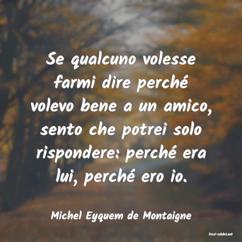 Se qualcuno volesse farmi dire perch� volevo bene a un amico, sento che potrei solo rispondere: perch� era lui, perch� ero io.