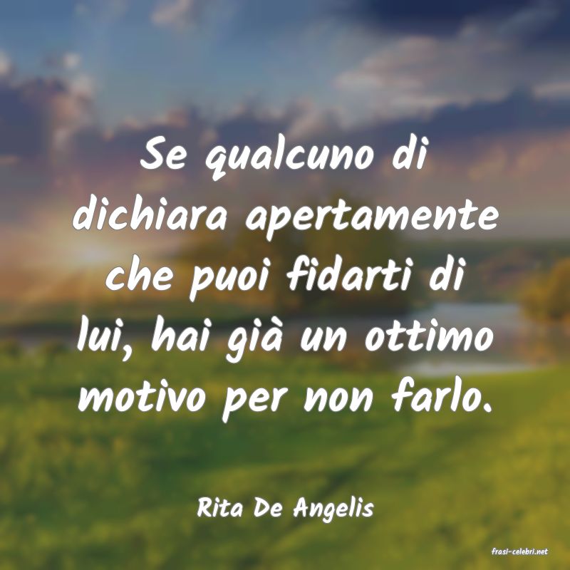 Se qualcuno di dichiara apertamente che puoi fidarti di lui, hai gi� un ottimo motivo per non farlo. Rita De Angelis