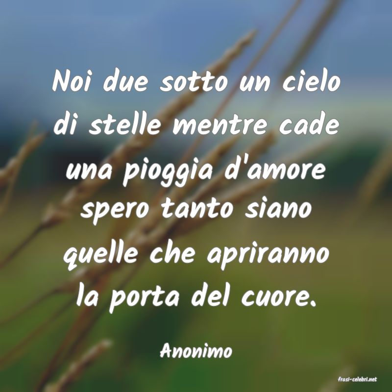 Noi due sotto un cielo di stelle mentre cade una pioggia d'amore spero tanto siano quelle che apriranno la porta del cuore.