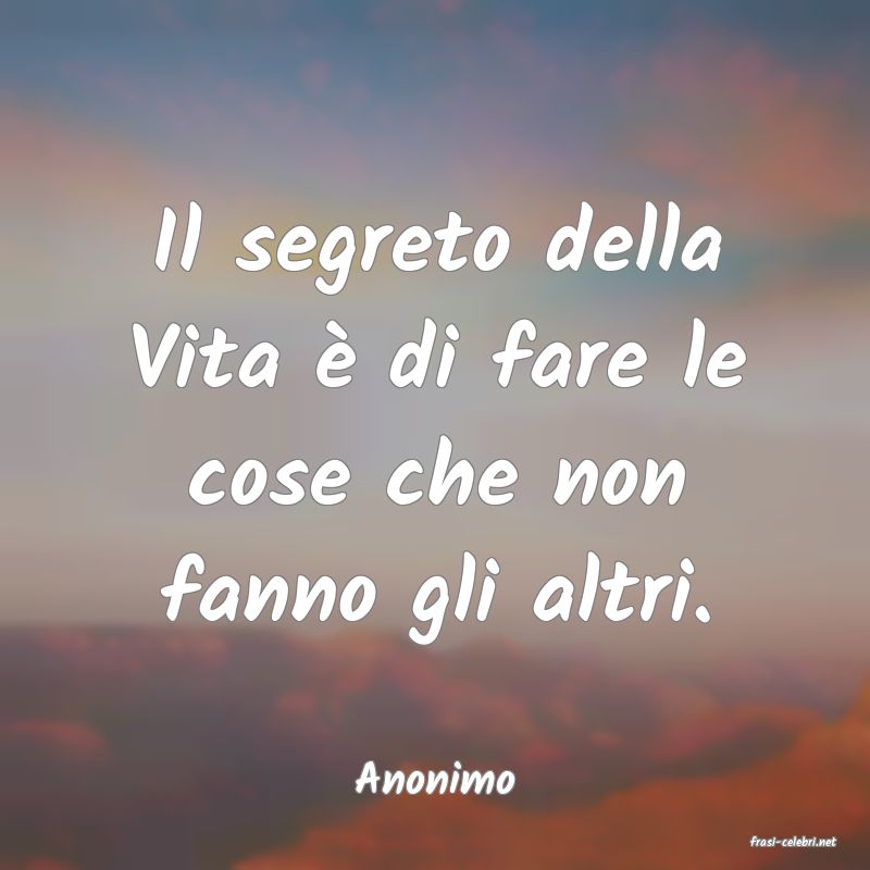 Il segreto della Vita � di fare le cose che non fanno gli altri.