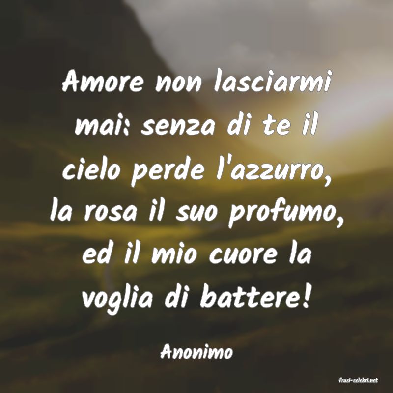 Amore non lasciarmi mai: senza di te il cielo perde l'azzurro, la rosa il suo profumo, ed il mio cuore la voglia di battere!