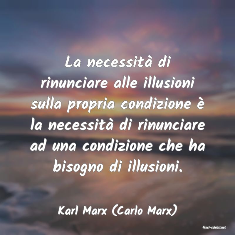La necessit� di rinunciare alle illusioni sulla propria condizione � la necessit� di rinunciare ad una condizione che ha bisogno di illusioni.