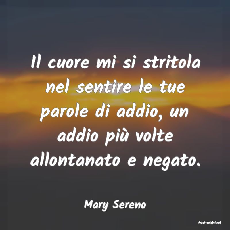 Il cuore mi si stritola nel sentire le tue parole di addio, un addio pi� volte allontanato e negato.