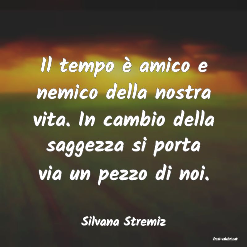 Il tempo � amico e nemico della nostra vita. In cambio della saggezza si porta via un pezzo di noi.
