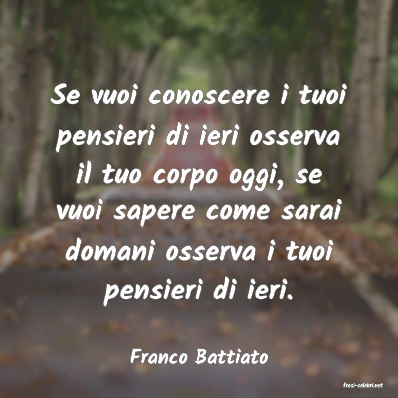 Se vuoi conoscere i tuoi pensieri di ieri osserva il tuo corpo oggi, se vuoi sapere come sarai domani osserva i tuoi pensieri di ieri.