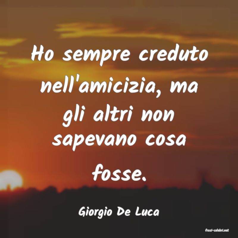 Ho sempre creduto nell'amicizia, ma gli altri non sapevano cosa fosse.