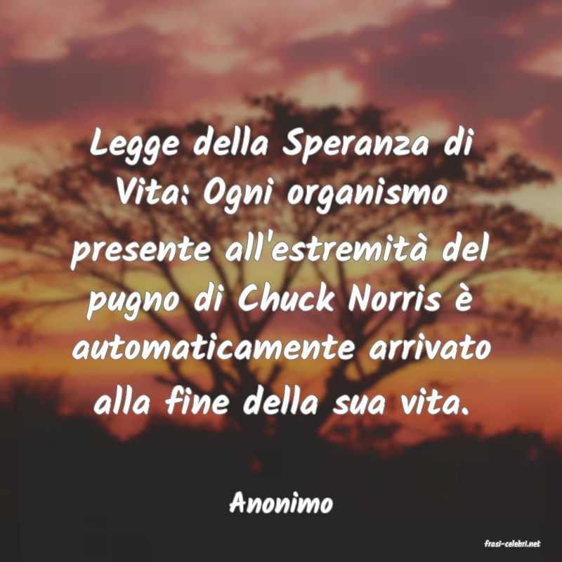 Legge della Speranza di Vita: Ogni organismo presente all'estremit� del pugno di Chuck Norris � automaticamente arrivato alla fine della sua vita.