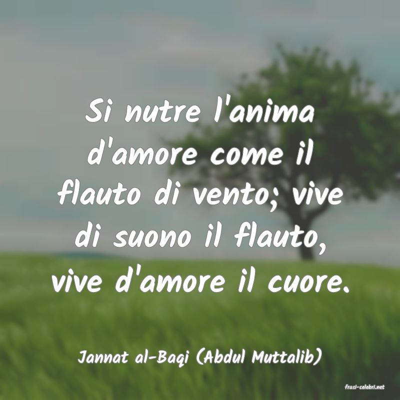 Si nutre l'anima d'amore come il flauto di vento; vive di suono il flauto, vive d'amore il cuore.