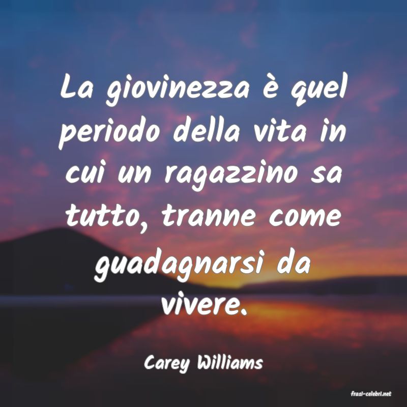 La giovinezza � quel periodo della vita in cui un ragazzino sa tutto, tranne come guadagnarsi da vivere. Carey Williams