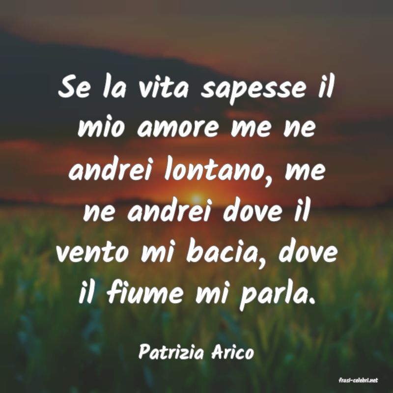 Se la vita sapesse il mio amore me ne andrei lontano, me ne andrei dove il vento mi bacia, dove il fiume mi parla.
