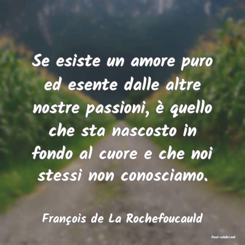 Se esiste un amore puro ed esente dalle altre nostre passioni, � quello che sta nascosto in fondo al cuore e che noi stessi non conosciamo. Fran?ois de La Rochefoucauld