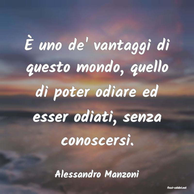 � Uno de' vantaggi di questo mondo, quello di poter odiare ed esser odiati, senza conoscersi.