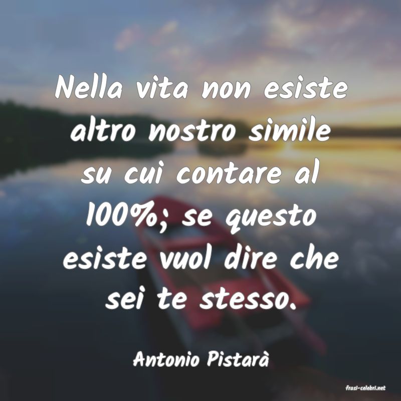 Nella vita non esiste altro nostro simile su cui contare al 100%; se questo esiste vuol dire che sei te stesso. Antonio Pistar?