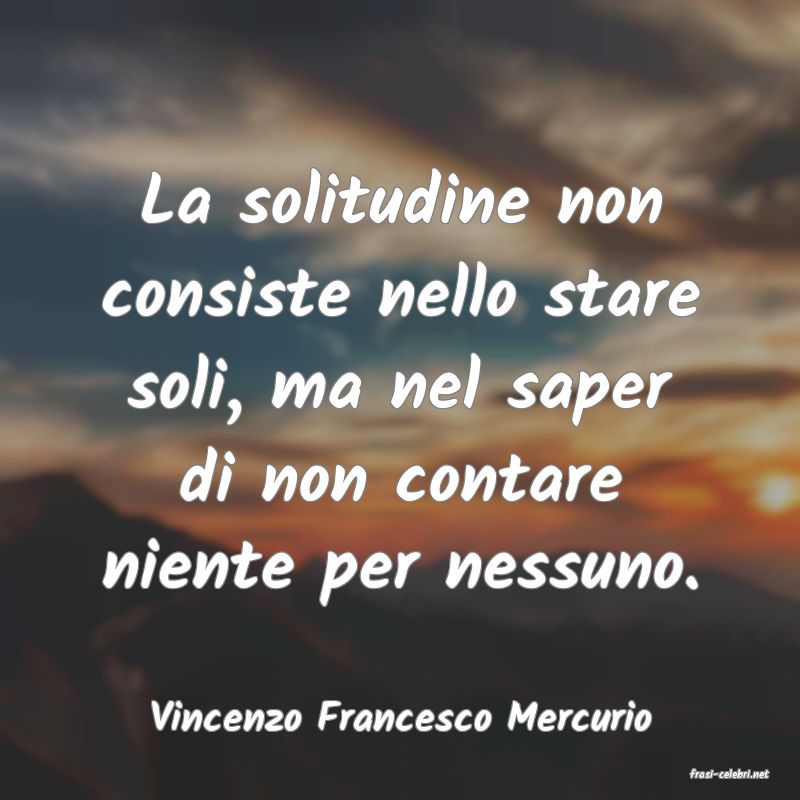La solitudine non consiste nello stare soli, ma nel saper di non contare niente per nessuno.