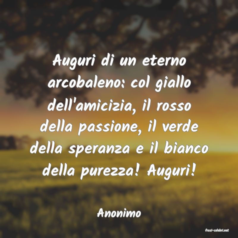 Auguri di un eterno arcobaleno: col giallo dell'amicizia, il rosso della passione, il verde della speranza e il bianco della purezza! Auguri!