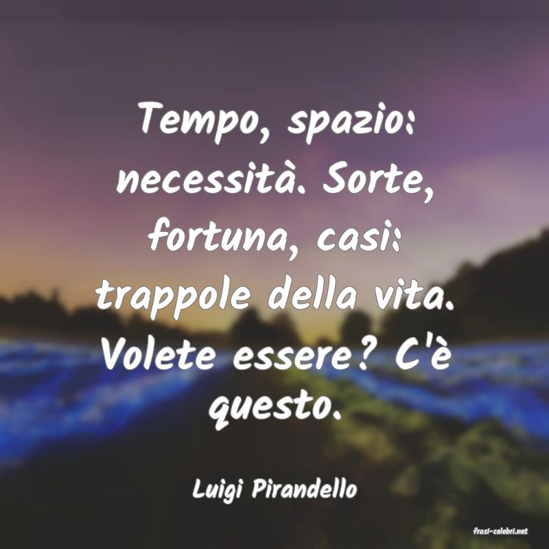 Tempo, spazio: necessit�. Sorte, fortuna, casi: trappole della vita. Volete essere? C'� questo.