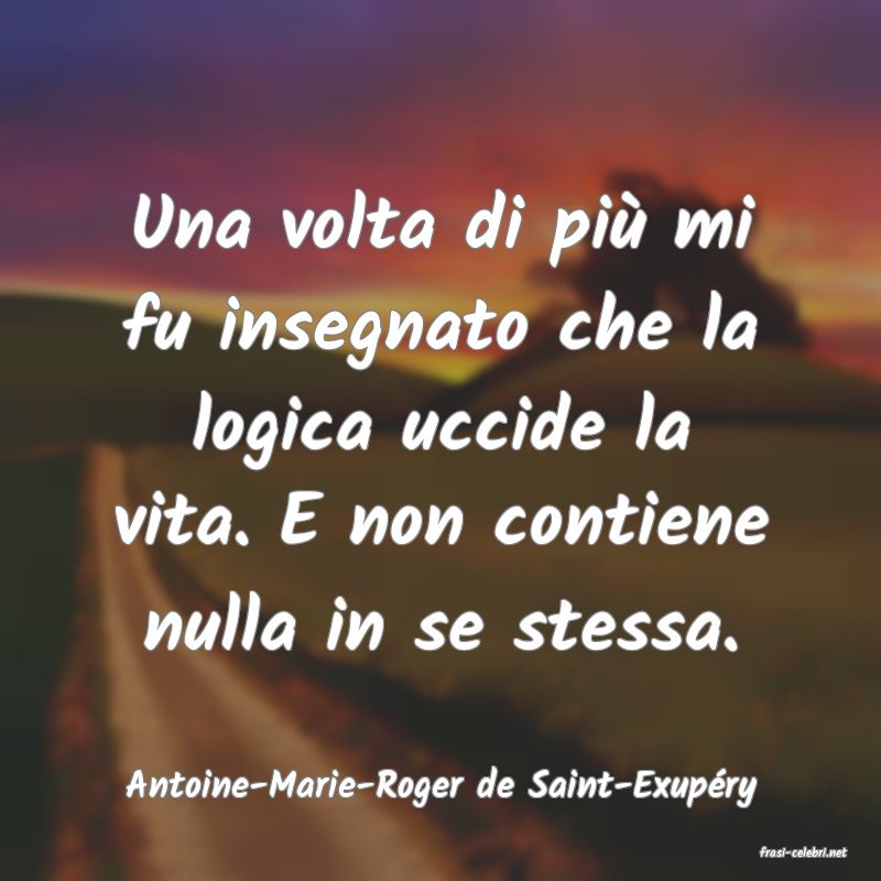 Una volta di pi� mi fu insegnato che la logica uccide la vita. E non contiene nulla in se stessa. Antoine-Marie-Roger de Saint-Exup?ry