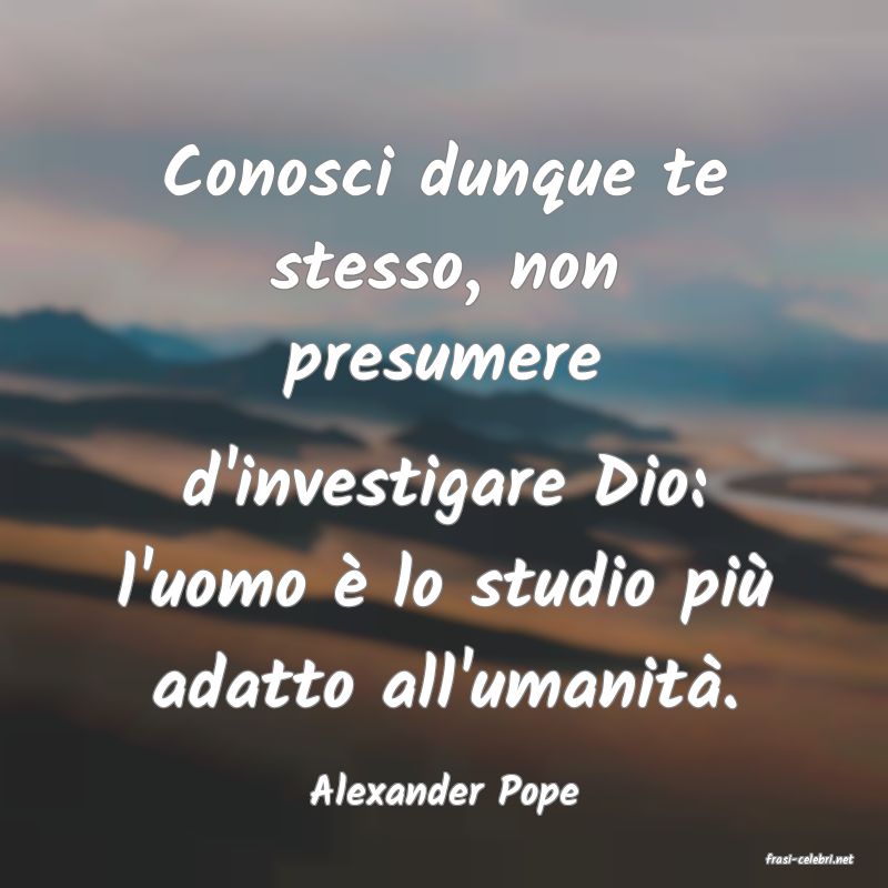 Conosci dunque te stesso, non presumere d'investigare Dio: l'uomo � lo studio pi� adatto all'umanit�.